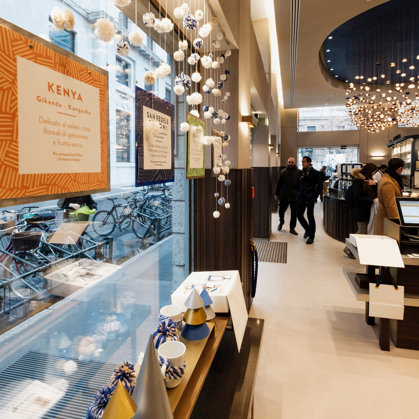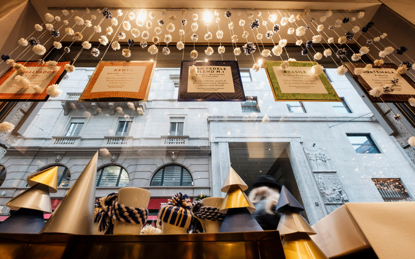 Design and realization of Christmas decorations at Lavazza Flagship store in Milan.