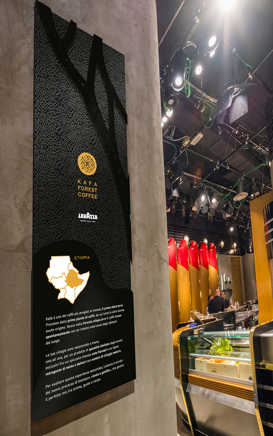 Design of in store communication of KAFA brand at The Stage Cafè in Milan