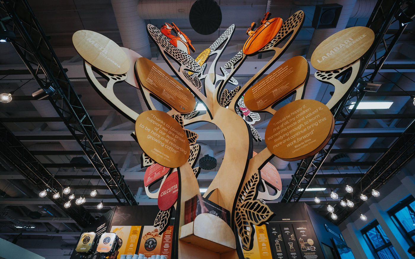 Design of the central part of the stand that represents the Tierra brand World and values.